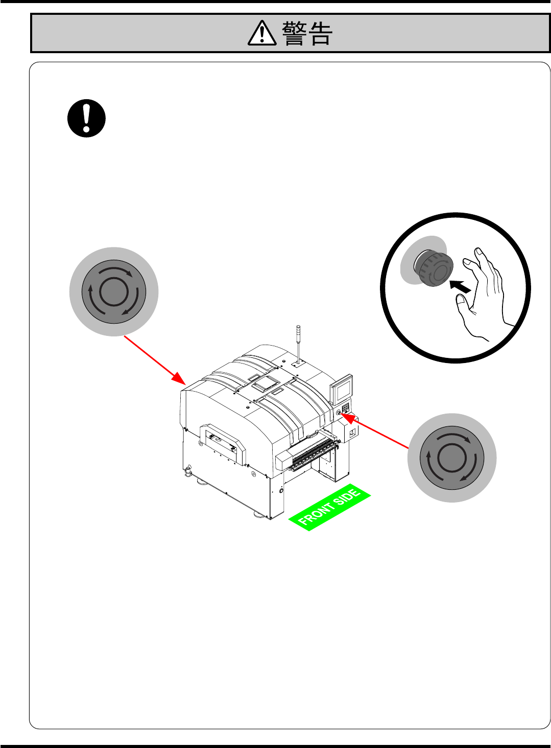 解除时,请将紧急停止按钮向箭头所示的方向转。