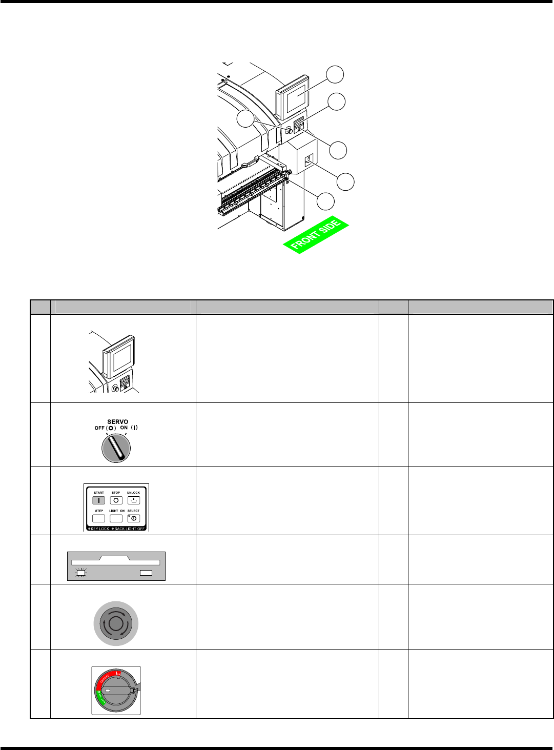 在后面也都有相同个数的紧急停止按钮、彩色接触面板操作面板、伺服开关。