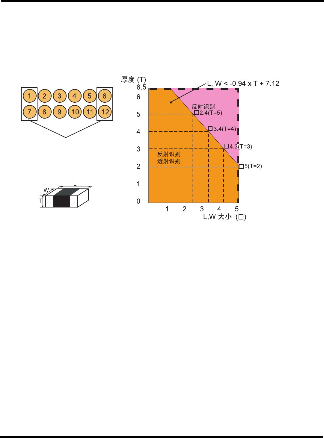 透射识别对象的部品大小有限