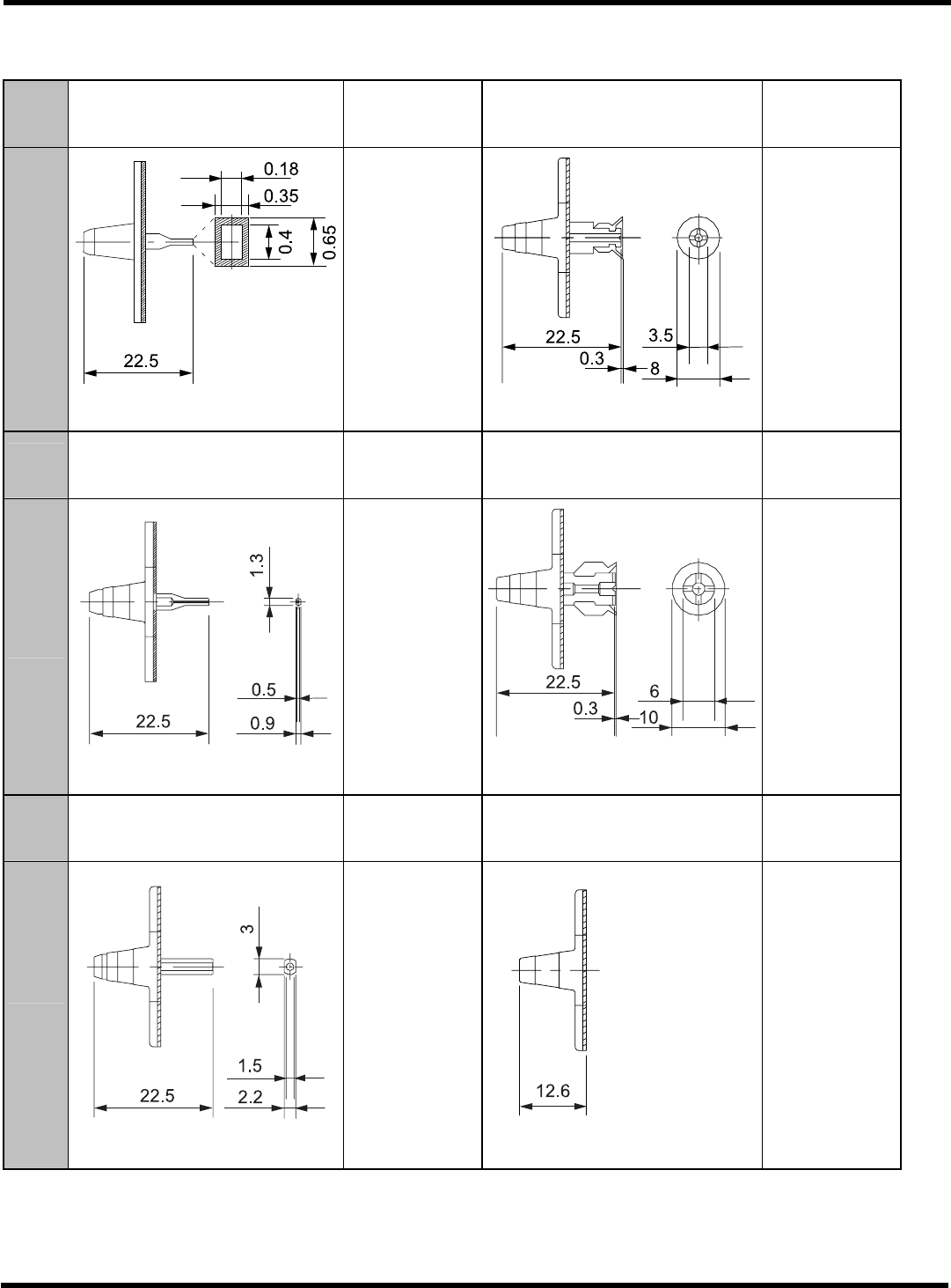 各个吸头上的可吸着的元件尺寸如下所示。