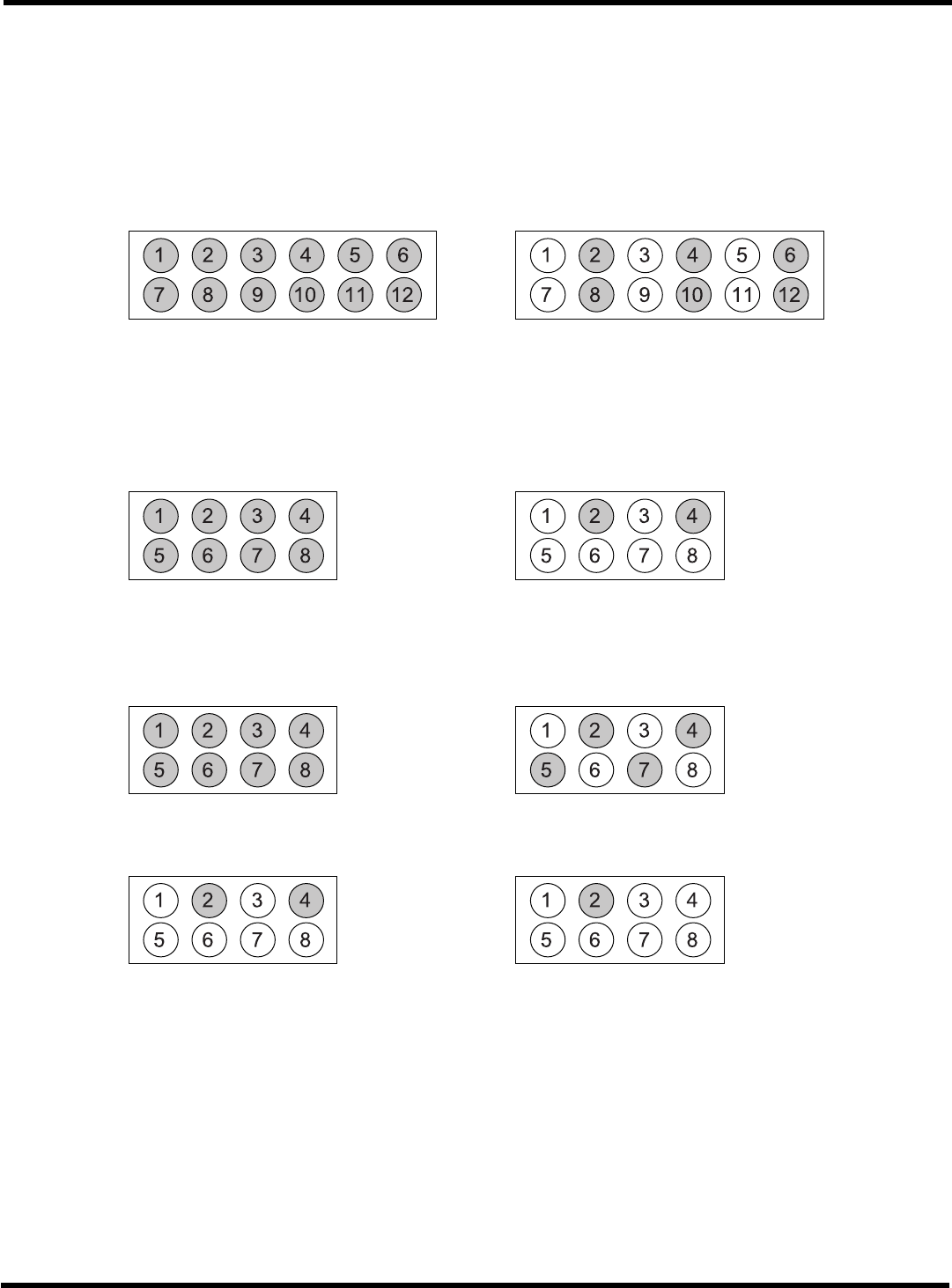 CM101-D 参考手册 1.4 其它的规格 Pa ge 1- 40 1.4.4 可吸着的元件尺寸和吸嘴布局 各个吸头上的可吸着的 元件尺寸如下所示。 图中的底纹吸嘴代表可 以使用。  高速吸头 (12 吸嘴 ) 6 mm × 6 mm 以下的元件 6 mm × 6 mm ~ 12 mm × 12 mm 的元件 (6 × 6 < A × A ≤ 12 × 12) EJM5B -007E EJM5B-00 8E  通用吸头 (L…
