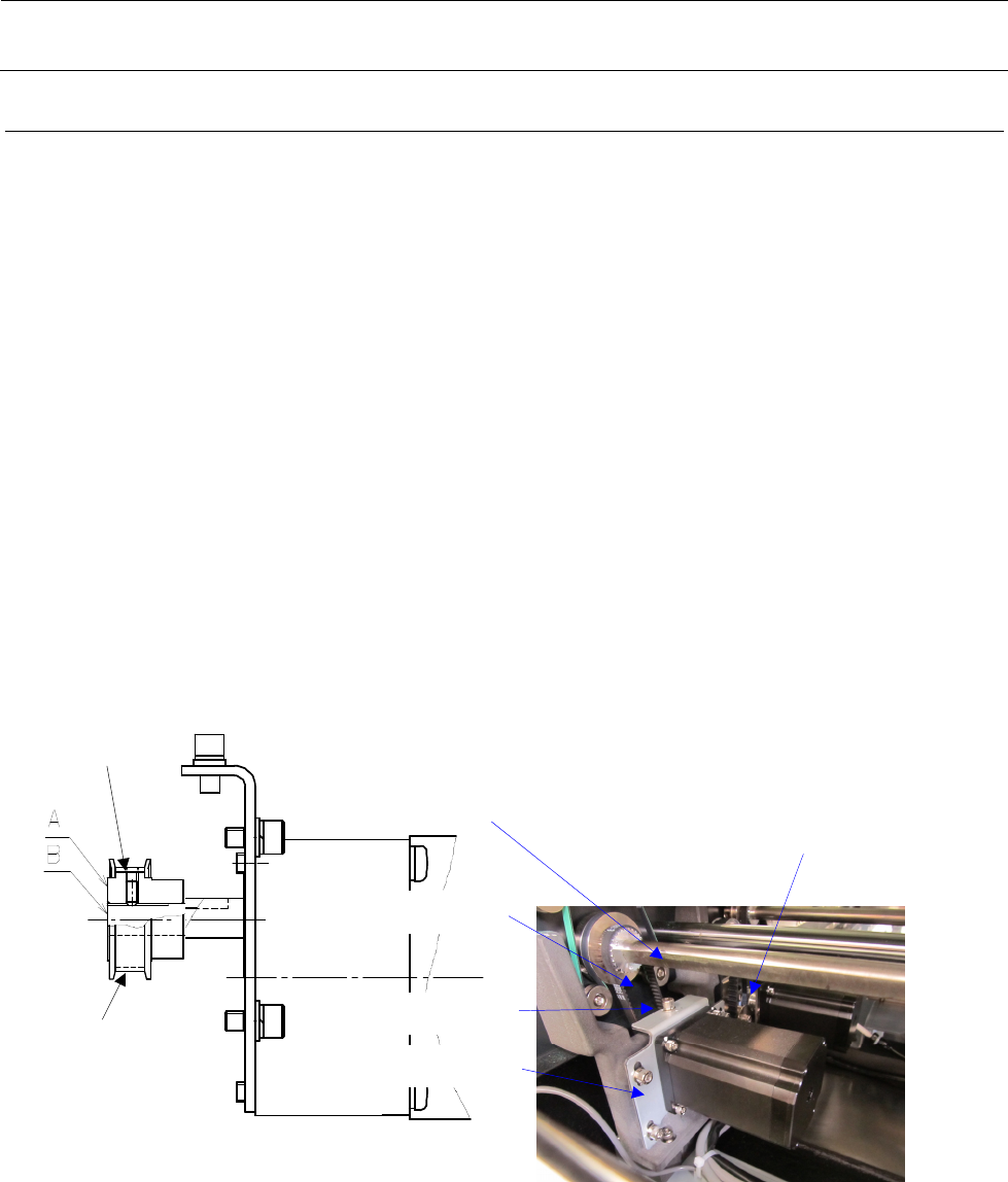 4)请安装马达轴与马达皮带轮 C,其安装位置,要使皮带轮端面 A 与马达轴端面 B 处于相同的面。