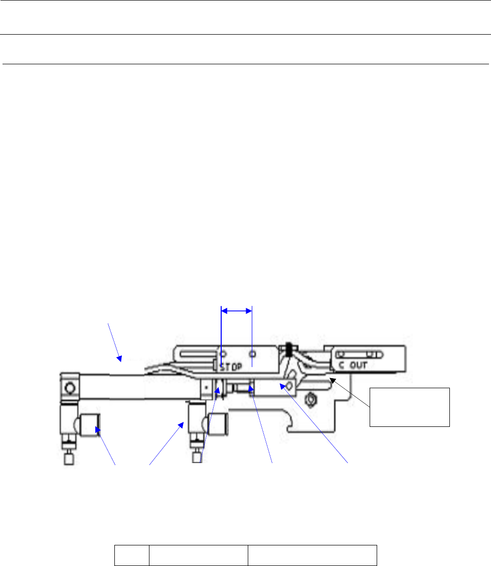 维修调整要领书 5-12 5-8 止动器缸筒的更换 1 )拧松③阀杆前端的螺母。 2 ) 拧下②安装用螺母。 3 ) 转动①气缸的轴部,从④制动器卡头上卸下缸筒①。 4 )拆下⑤速度控制器( 2 个)。 5 )请按照 4 )~ 1 )的步骤进行组装。 此时,请注意①气缸和止动器架的长孔应该在一条直线上,动作顺畅。 请在①气缸的螺丝部位涂抹 Loctite277 。 组装时,要使②安装用螺母的端面至④制动器卡头的端面的距离为 15mm 。…
