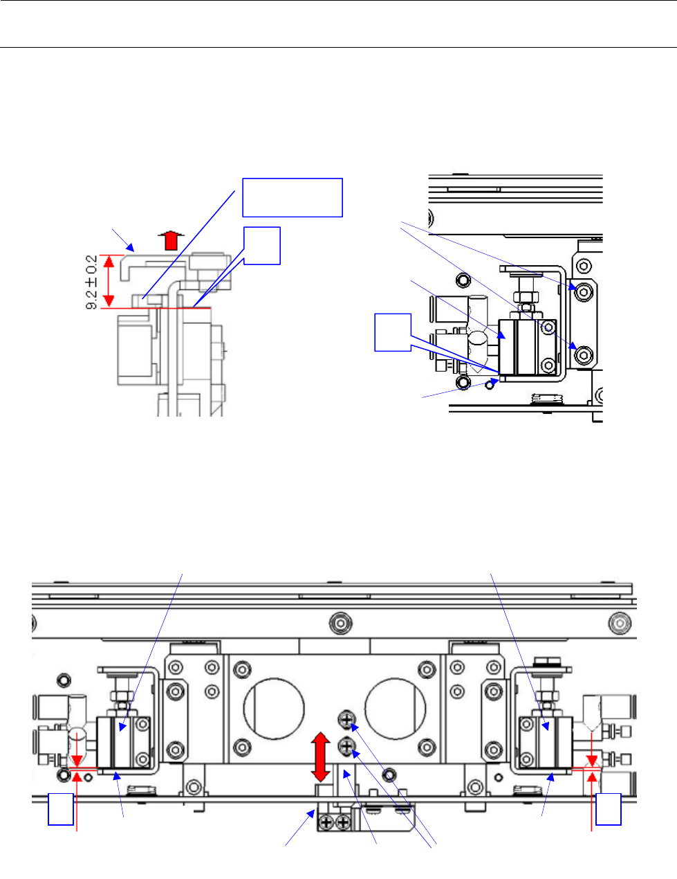 注)规格值:如果不能调整到 9.2±0.2mm 以内,请将反面一侧的②螺丝松开,调整夹紧杆的位置。