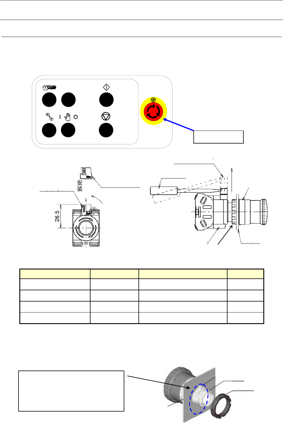 4) 安装方法:拆下锁定螺母,确认橡皮垫圈正常安装后,将操作部从面板前面穿过面板孔。 使操作
