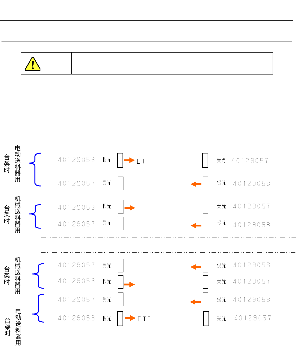 维修调整要领书 11-1 第 11 章 送料器浮动传感器的更换·调整 为了防止突然的起动造成事故,请关掉电源之后再进行操作。 11-1 传感器的更换和高度调整 1 ) 传感器,包含后侧( OP )是按下图配置的。 更换传感器后必须进行高度调整。 图 11-1-1 前侧 后侧 [ OP ] 误插入检出 送料器浮起(电动) 送料器浮起(机械式外侧) 送料器浮起(机械式外侧) 送料器浮起(机械式内侧) 送料器浮起(机械式内侧) 送料器浮起(电…