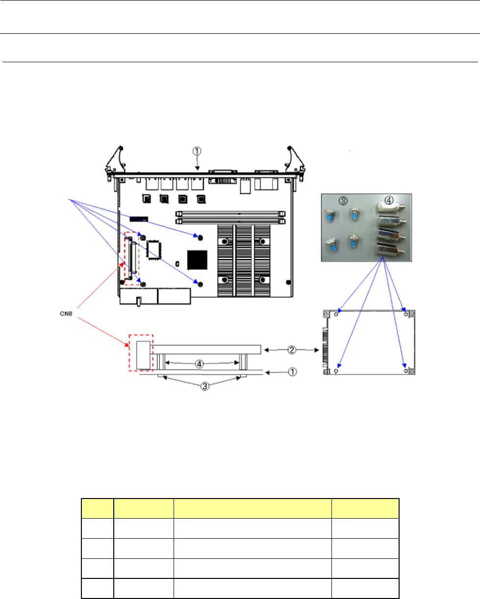 2) 请卸下基板背侧的③螺丝,将②SSD 从连接器 CN8 中拉出。