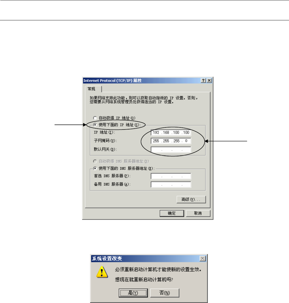 6) 于是显示[Internet Protocol(TCP/IP)的属性]对话框。在这一画面中,请选择①“使用下面的 IP