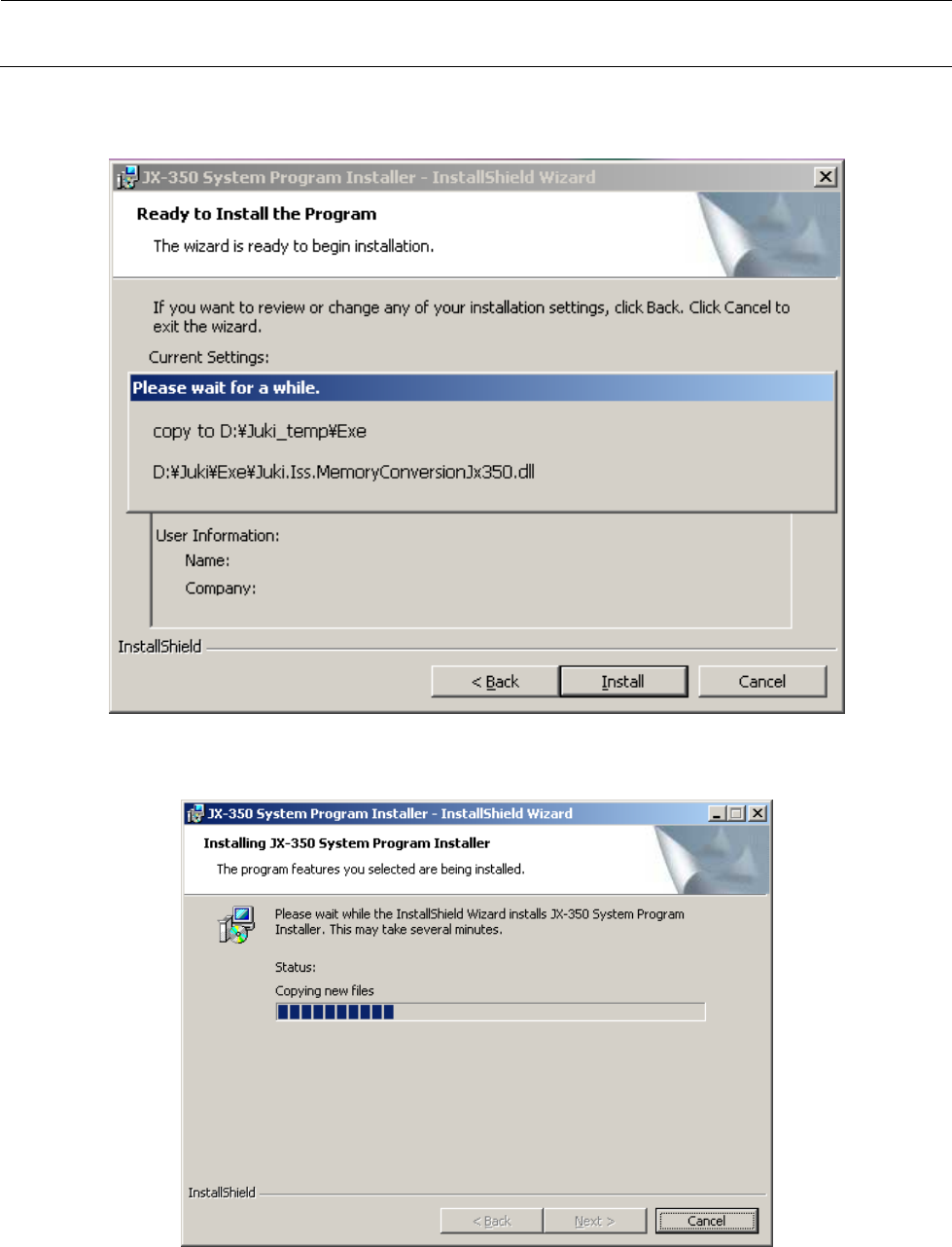 维修调整要领书 12-43 9 ) 在 8 )的 “ 现有软件的备份 ” 的选择中点击了 “Yes” 时,会显示正在建立现有软件备份的画面。 10 ) 安装中间,进行状态以进展条显示。