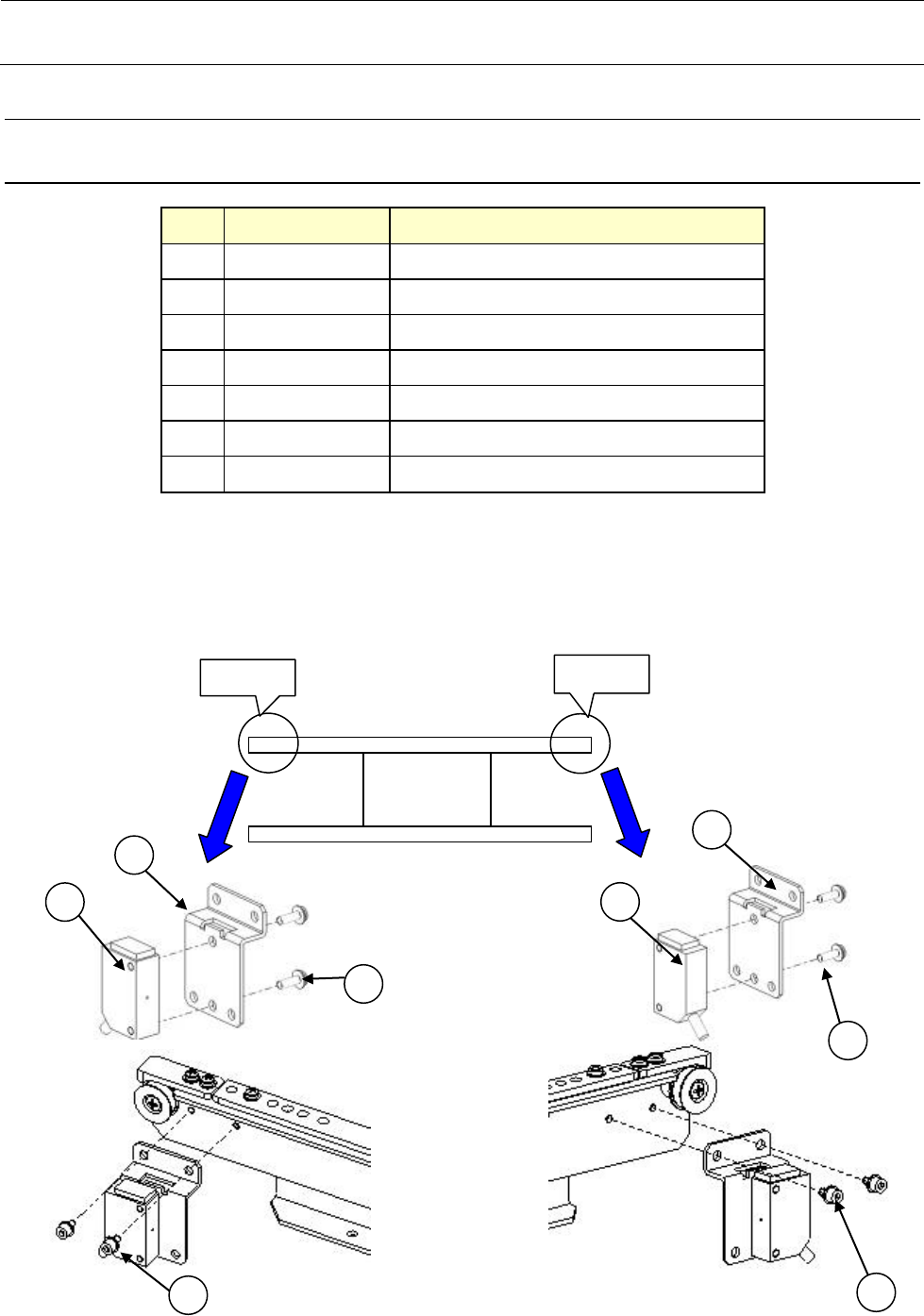 2)用⑤带垫片螺栓将①传感器托架固定在可动侧轨道的左右各自位置上。