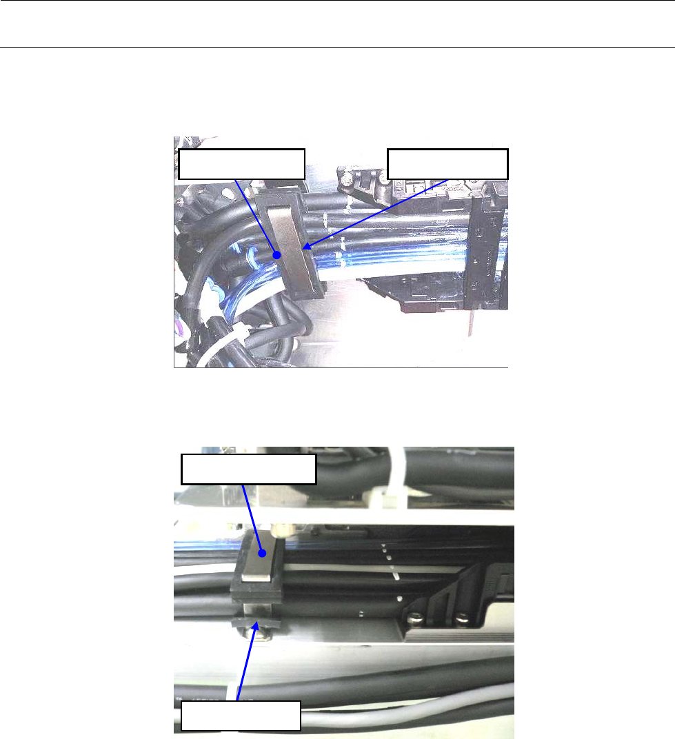 维修调整要领书 1-22 1-6-2 电缆标识( X )的确认 1 ) 确认 XY 拖链电缆的标识位置。 (位置是离开 HEAD-CN2 插接器端 220mm ) 图 1-6-2-1 2 ) 确认 1394 机器人电缆、 OPTICAL FIBER CABLE 7M 的标识位置。 (位置是机器人电缆离开插接器端 700mm 处,光纤电缆离开 200mm 处) 图 1-6-2-2 OPTICAL FIBER CABLE 7M 1394 机…