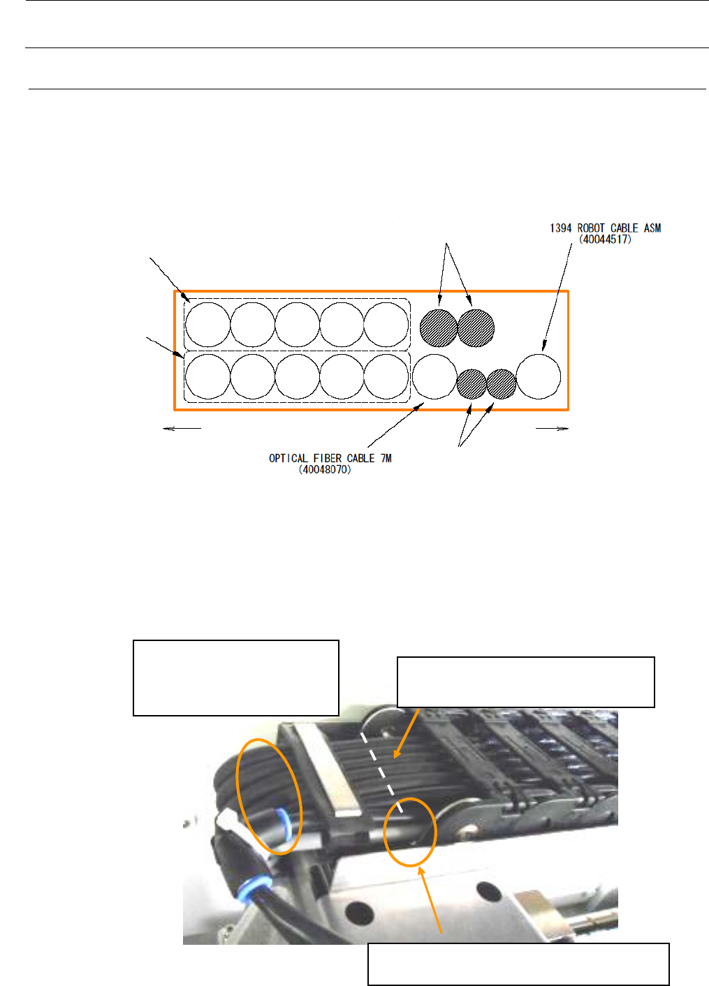 1) 给各电缆(Y 拖链电缆、XY 拖链电缆、1394 机器人电缆、OPTICAL FIBER CABLE 7M)放进电