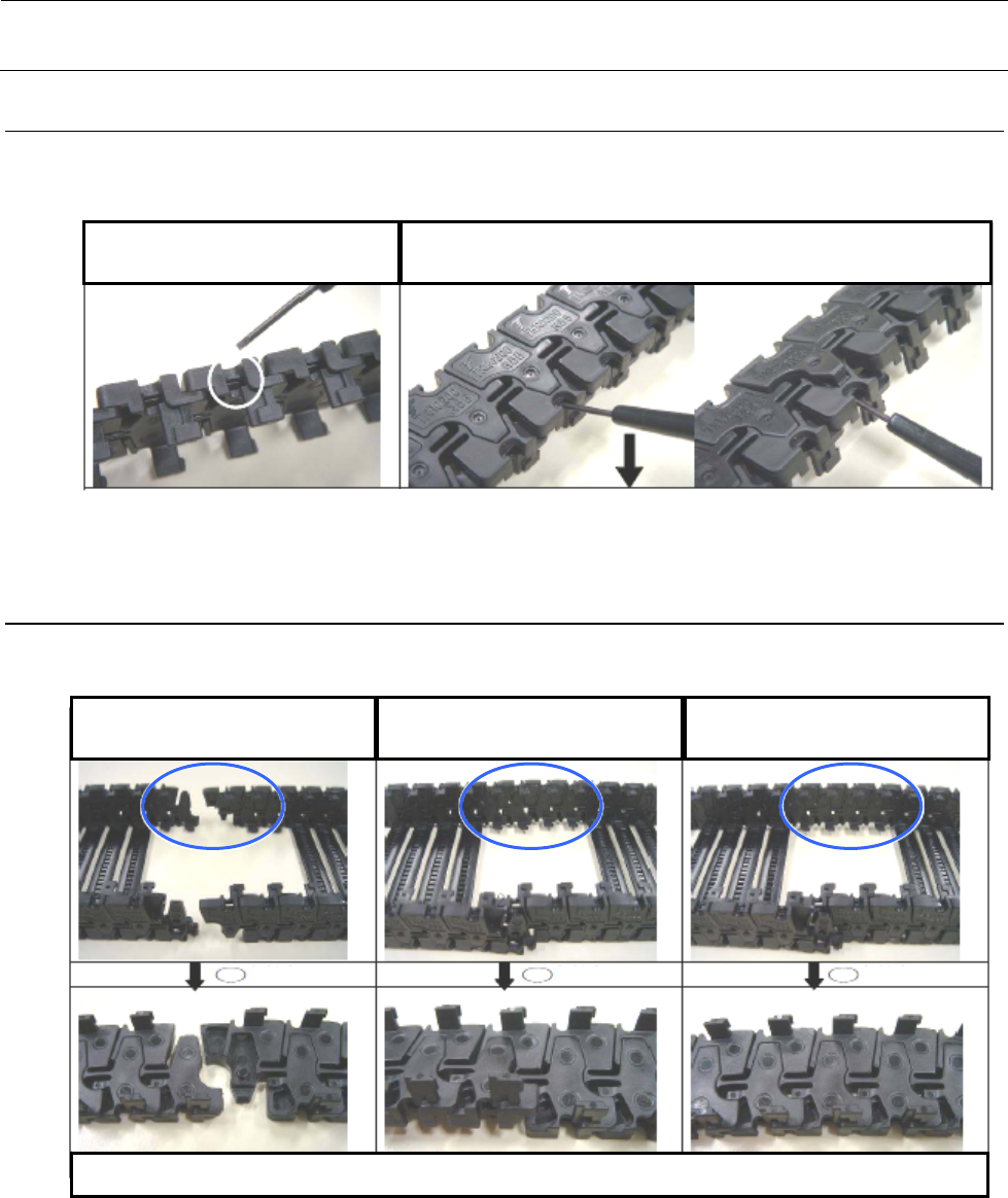 照片① 链板浮起的状态(安装不到位) 照片② 利用链板安装工具进行安装