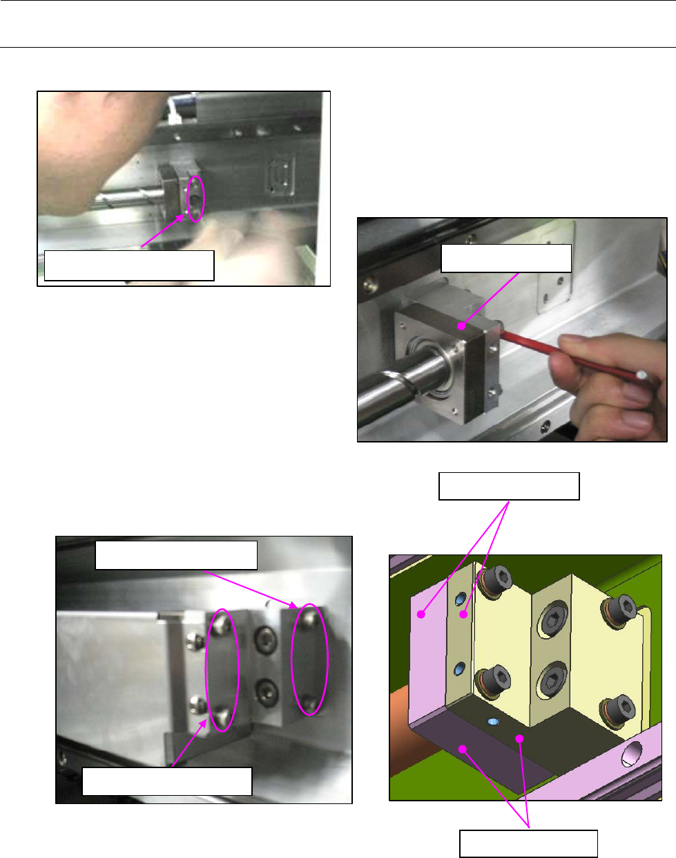 (2)将 HEAD_UNIT 向左侧靠,把 1-8-3(6)中临时紧固的 X 滚珠螺杆支承件的 4 个固定螺丝正式