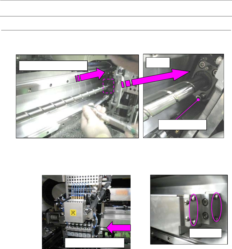 1)将 HEAD_UNIT 向右侧靠,把 1-8-33)中临时紧固的 X 滚珠螺杆螺母部的