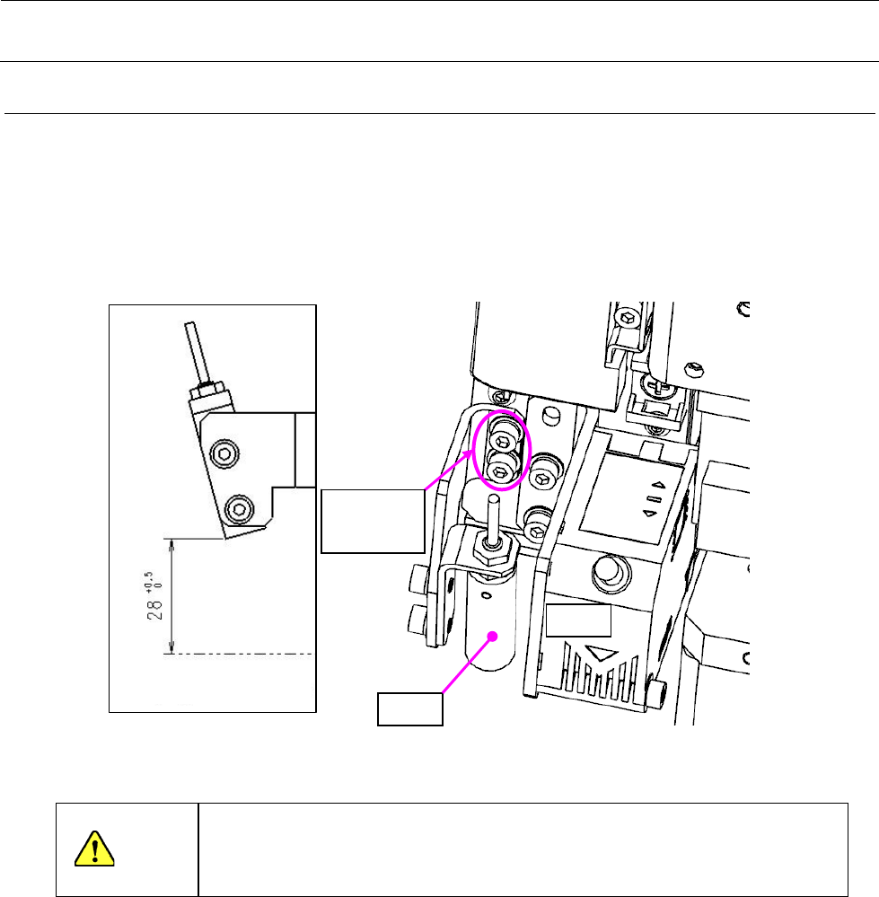 把坏标记传感器向 CAL 部上移动,把坏标记传感器面和 CAL 部上面的距离调整为 28 mm,拧松 cap