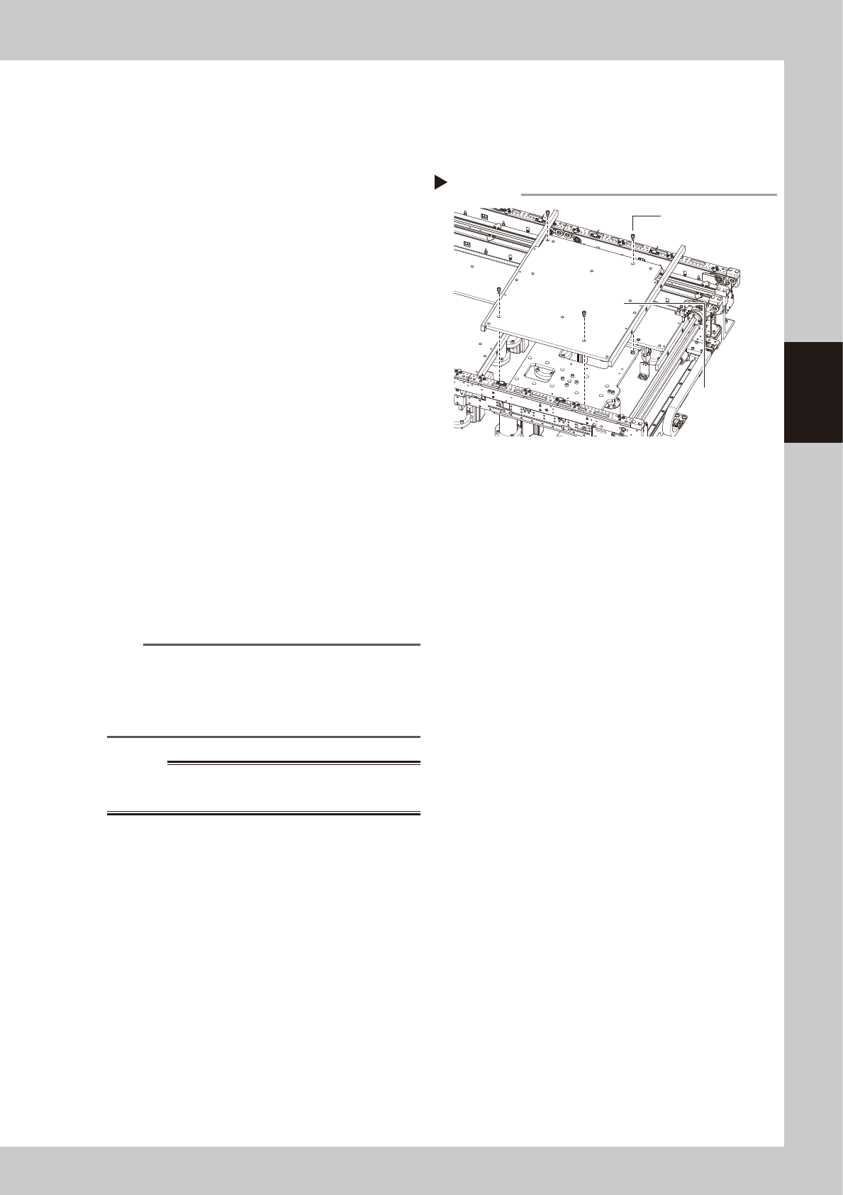 3-63 3 Periodic maintenance items 5.3.4 Cleaning/lubricating PU-axis ball screw T his section describes the procedure for cleaning and lubricating the PU-axis ball screws. See "Chapter 5 Lubricating points" for…