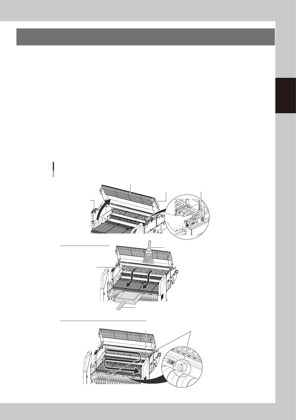 2. Using a feeder plate cleaning brush, sweep out the chips and debris in the direction of arrow shown in the figure
