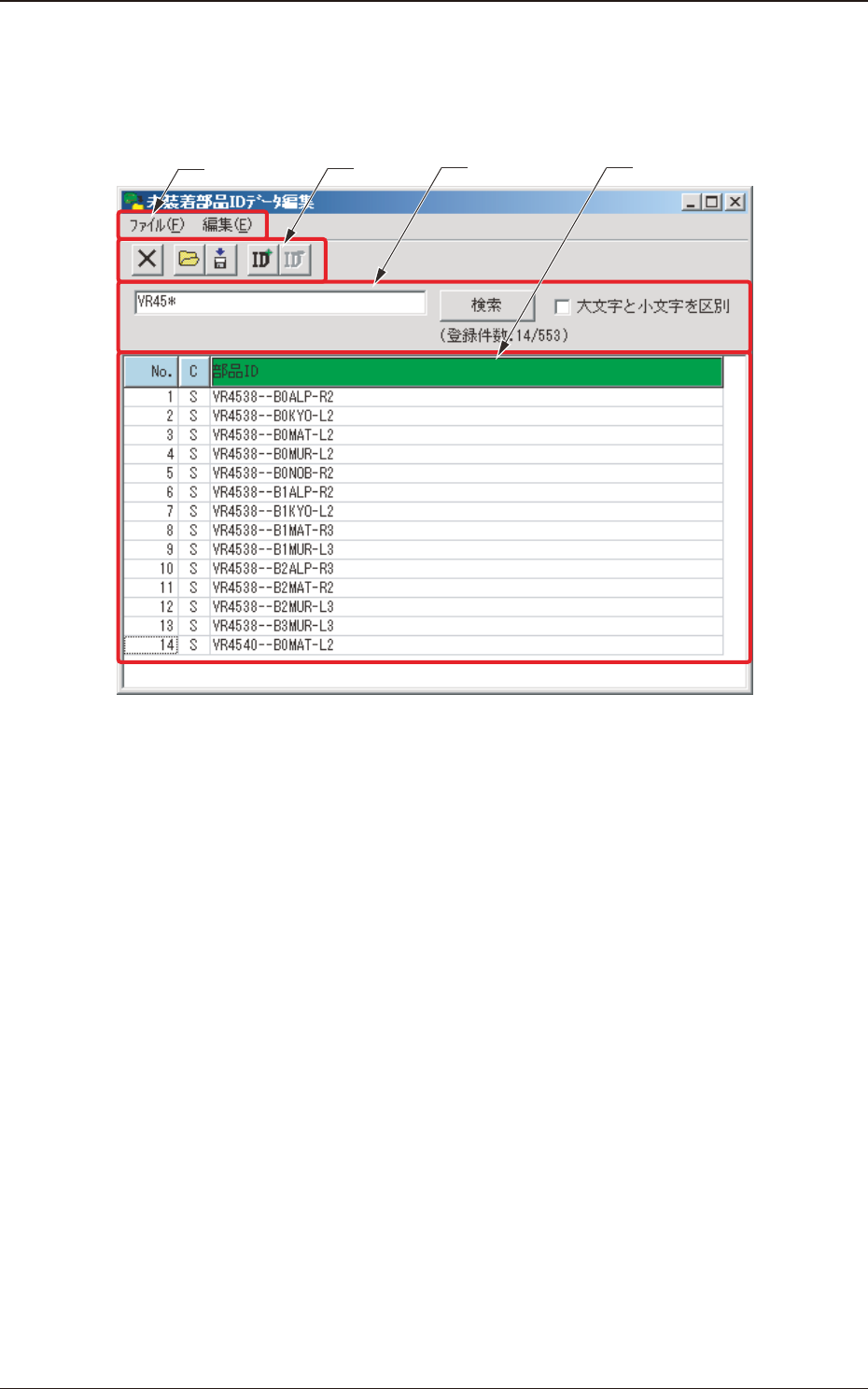メイン画面で、[ ツール (T)] - [ 未装着部品 ID データ編集 (S)] を