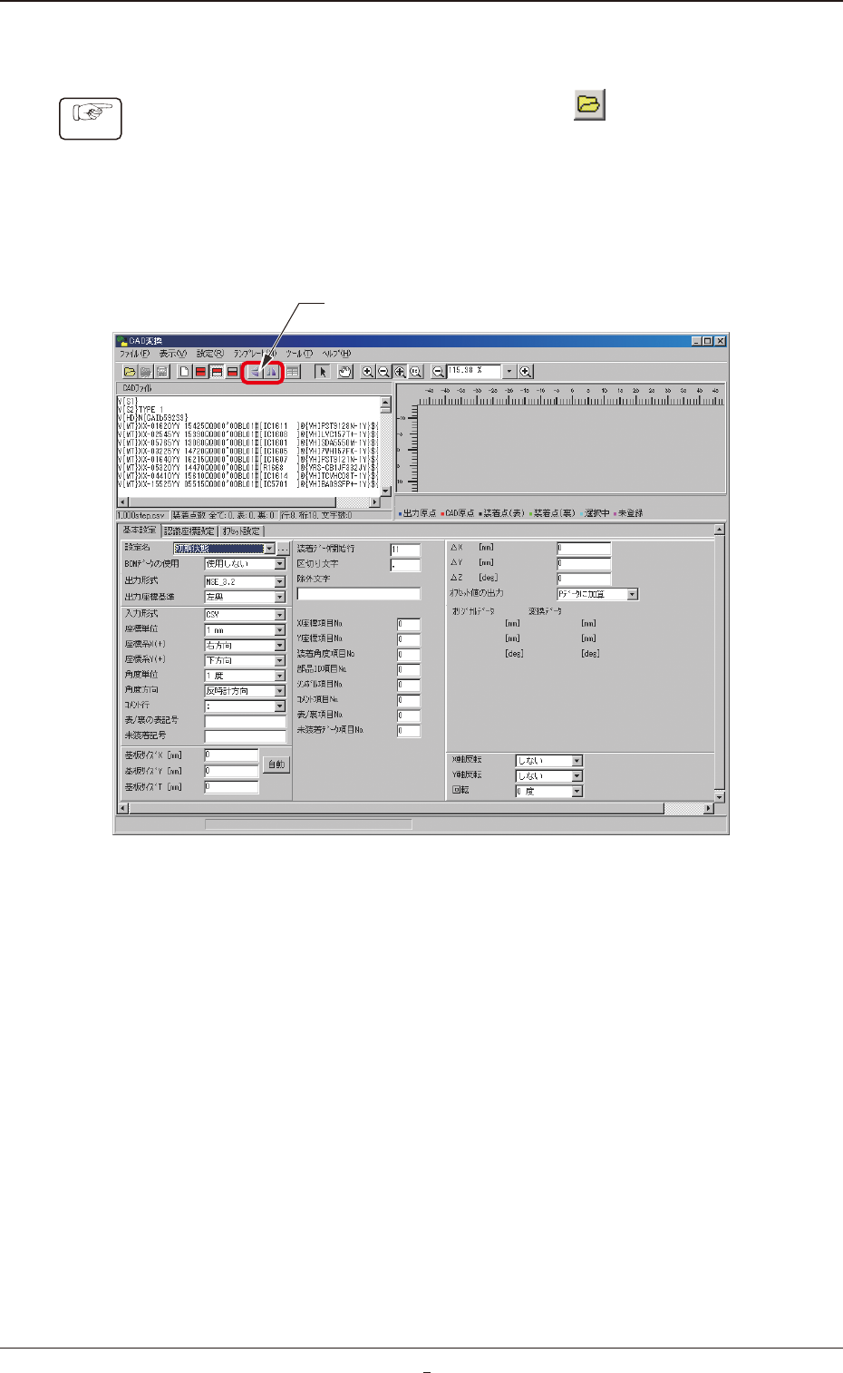 (1) “CAD 変換”画面で [ 読み込み ] アイコン( )をクリックす