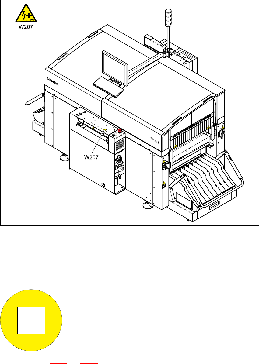 2 Operational safety User Manual SIPLACE CF 2.2 Warning labels Software Version S R.408.xx 03/2006 US Edition 34 2.2.4 W arning label W21 1 on t he CEKON plug 2 Warning label W 211 (numb er per p lacemen t system : 1) 2 …