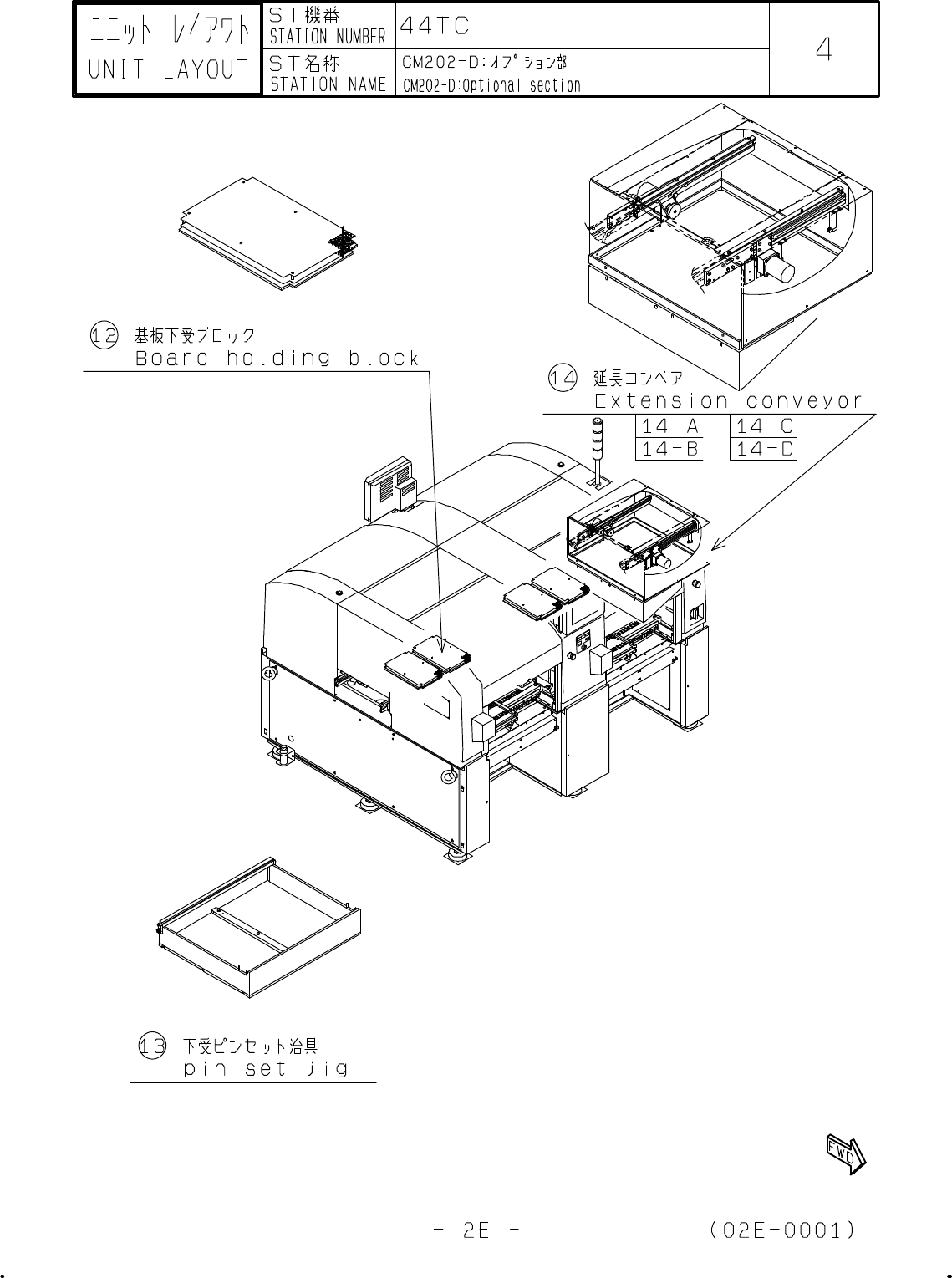 12 180EC0M0000 基板下受ブロック:CM202-D op Board holding block: CM202-D op 1 27 13 180FC0M0000 下受ピンセット治具:CM202-D op Pin set jig:CM202-D op 1 29 14 110CC0M0000 延長コンベア:CM202-D op Extensional conveyor:CM202-D op 1 14-A 31 14-B 3…