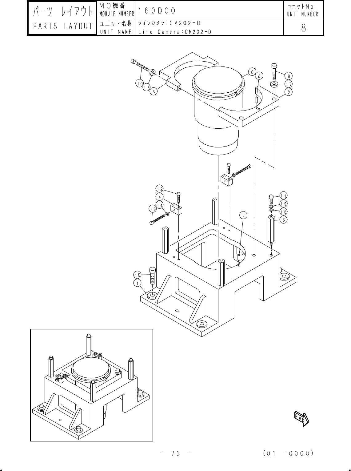 1 160CC011010 BRACKET 1 2 160CC011020 SET-COLLAR 1 3 160CC011030 HOLDER 1 4 160CC061010 BRACKET 1 5 160CC081010 CAMERA CS3170Q(Cable5m) 1 6 160CC081020 LENS KOF-1XNE 1 7 160CC081040 LED-LAMP-UNIT LED-MK(Fresnel lens f=45…