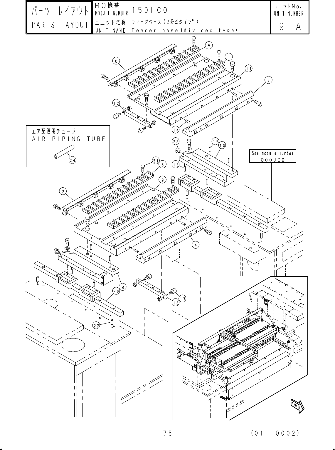 1 150FC011010 GUIDE 2 2 150FC011020 STOPPER 1 3 150FC011030 GUIDE 1 4 150FC011040 BLOCK 1 5 150FC011050 GUIDE 1 6 150FC011060 STOPPER 1 7 150FC011070 BLOCK 1 8 150FC011080 STAND 1 9 150FC011091 FEEDER-BASE 1 10 150FC0111…