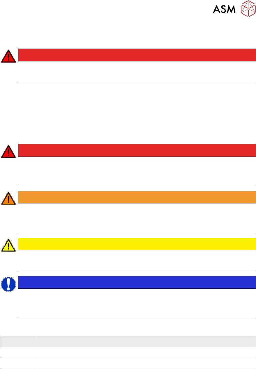 ► 只有按照“用户手册”/“预防性维护手册”中的规定和指示使用系统时,才能保证 ASM