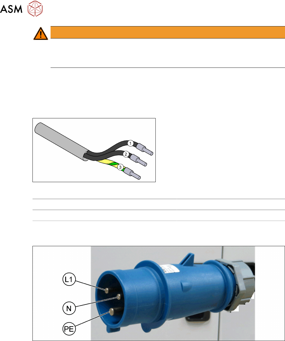 配器和主电源连接。20 米以上的 3 x 4 mm² 电缆。