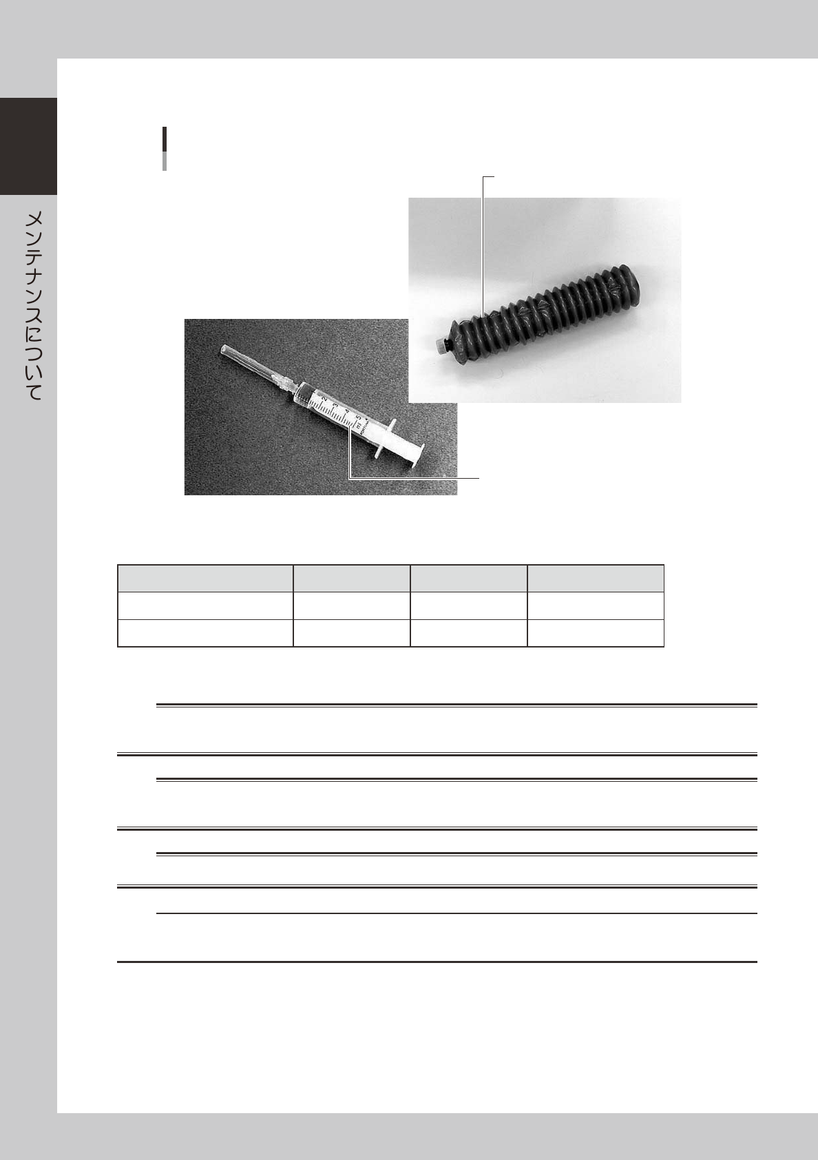 グリスなどの潤滑剤は、皮膚に触れると炎症を起こす場合がありますので注意してください。取り扱う場合は、保護手袋を使用