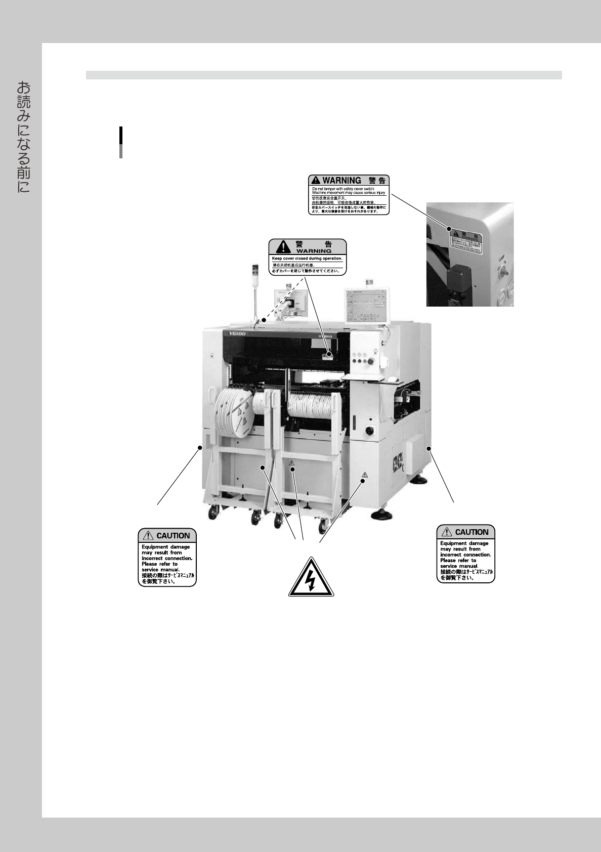 機械を正しく安全にご使用いただくため、本体および周辺機器に下記の内容の警告表示をしています。