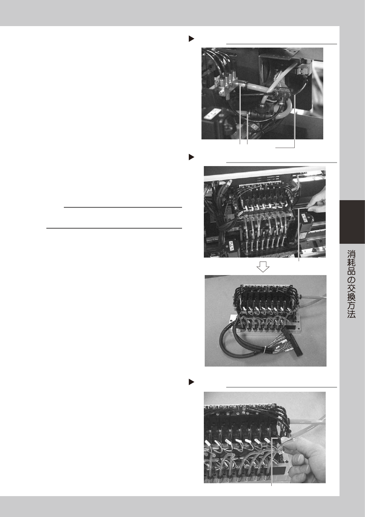 ヘッド上部の右側にあるエアホースを 3 箇所で外