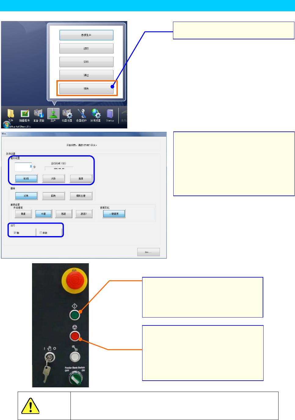 生产前执行预热,有助于在稳定状态下开始生产。