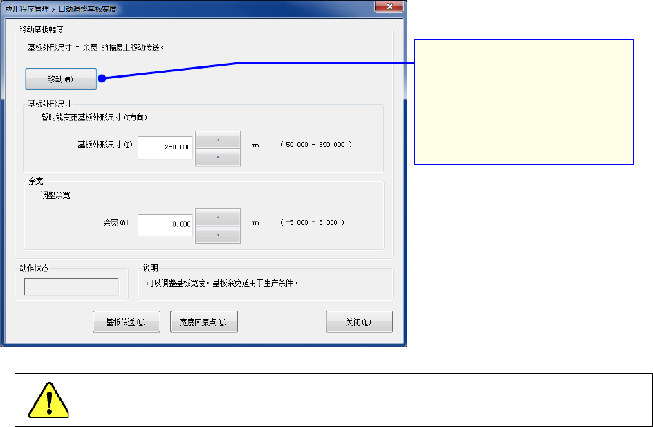 在自动调整基板宽度对话框中选择「移动」后,传送动作即开始。