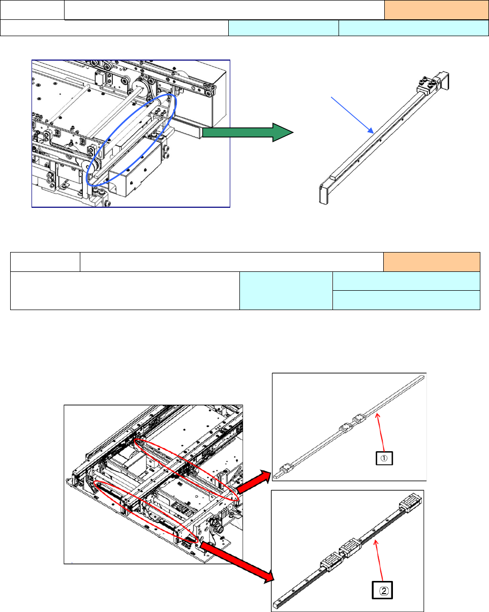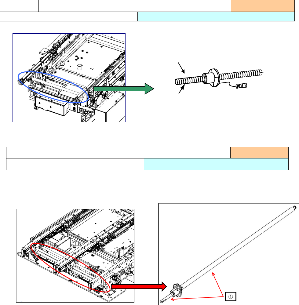 操作手册 I 4- 31 1) 导轴 左右各 1 根,共 2 根 请在① 处全面涂上润滑 油。 1 ) 导轴 左右各 1 根,计 2 根 2 ) 请在①处 全面涂抹润滑油 。 3 ) 请在②处 全面涂抹润滑油 。 注油项目 4-3- 5 传送导轴(单通道规格) 实施频度 :每月 使用工具 :毛刷 使用润滑油 : 6459 润滑油 N 注油项目 4-3- 6 传送导轴(双通道规格) 实施频度:每月 使用工具:毛刷 使用 润滑油 : 645…