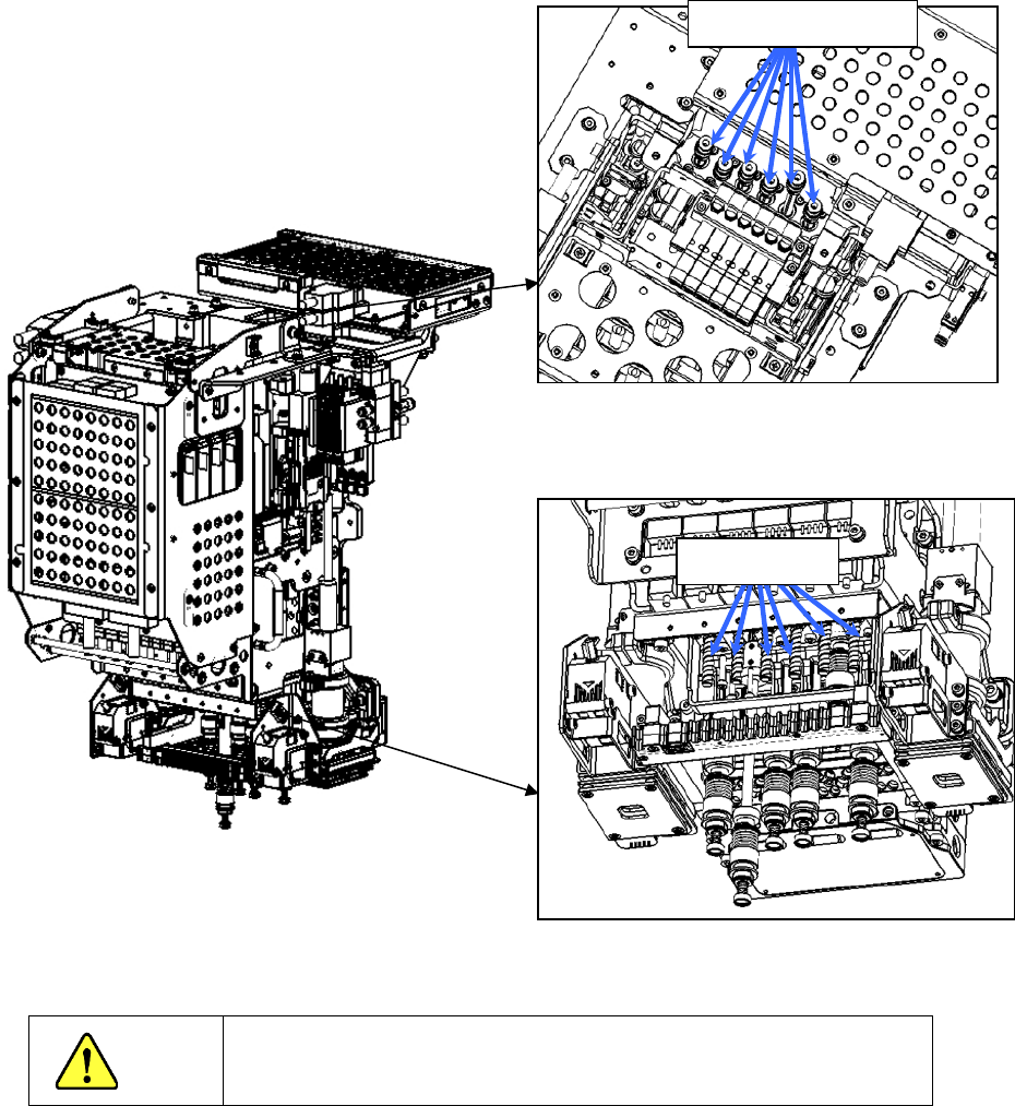操作手册 I 4- 35 1 ) 通过 「手 动控制」 使 支撑台 上升,从 两侧在滚珠 丝杠轴 4 个位置全面涂抹上 润滑油。 双通道传送的支 撑台没有注油位 置。 注油项目 4-3- 10 支撑台(单通道规格) 实施频度 : 2 个月 使用工具 :毛刷 使用 润滑油 : 6459 润滑油 N 支撑台 滚珠丝杠