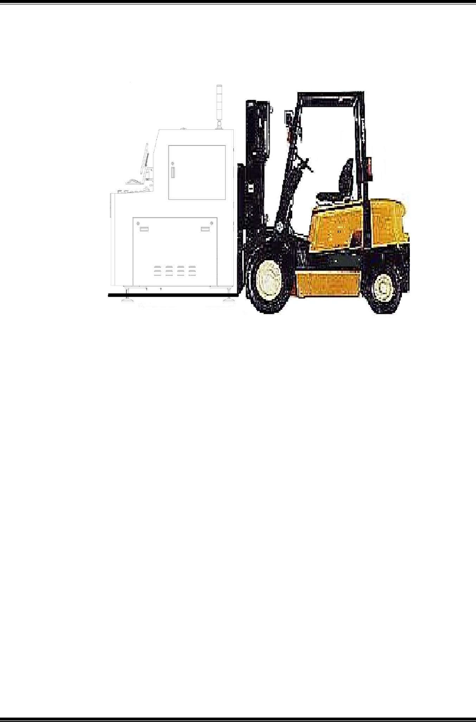 2.使用 1.5 噸級以上之堆高機,由機台後下方底盤進入,是唯一舉升機台之方式,