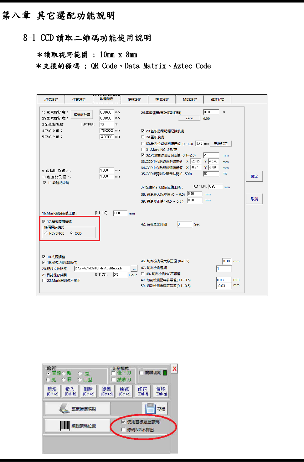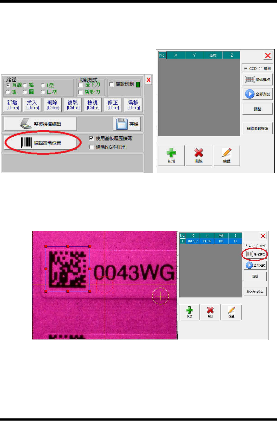 置編輯畫面。備註:需勾選“使用基板履歷讀碼”才可進入“編輯讀碼位置”,