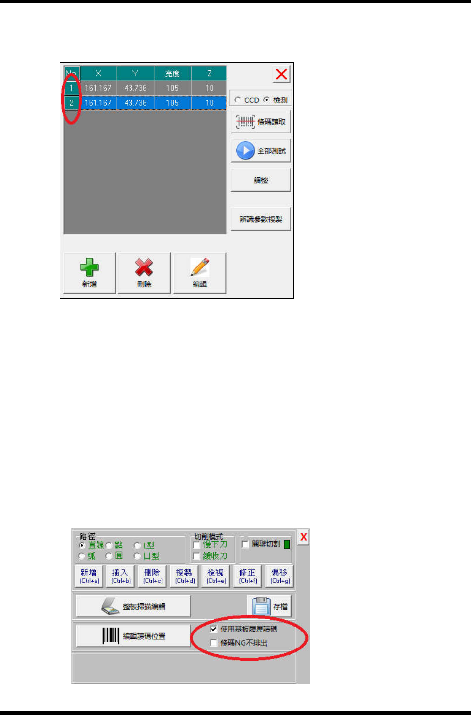 10.若需編輯已設定之讀碼座標位置及參數,請將 CCD 位置移動至新讀碼的位置、