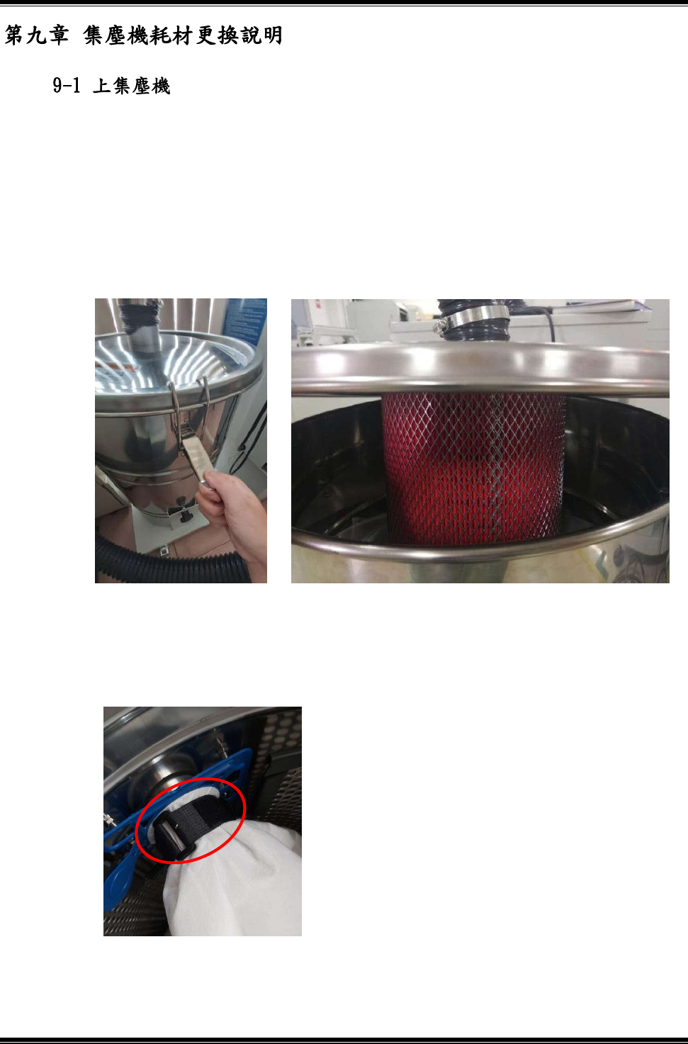 (3)鬆開固定繩方可取出集塵袋並更換,如圖 9-1-2。