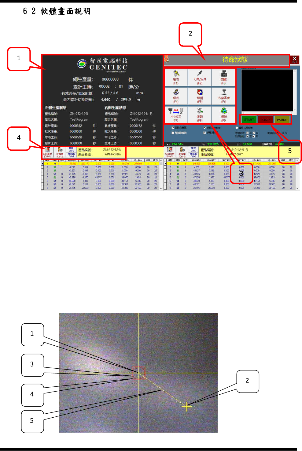 (1)影像及生產狀態區:呈現鏡頭取像之畫面及顯示產品基本資料。
