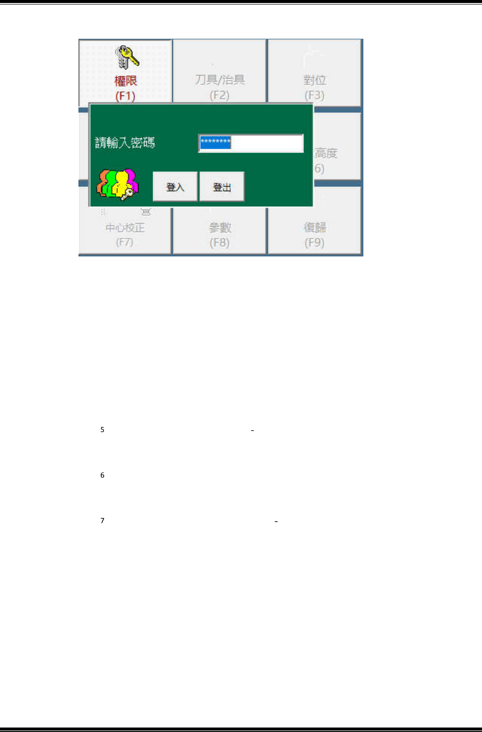 ○管理者權限登入,可由參數 權限設定進行密碼修改及設定工程人員和操