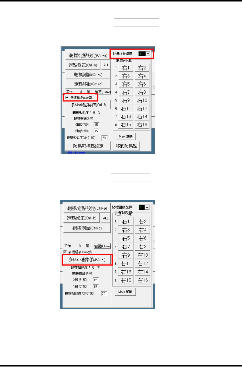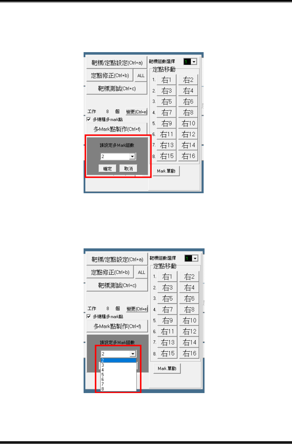 a.點擊“多 Mark 點製作”按鍵,出現多 Mark 組數設定之下拉式選單