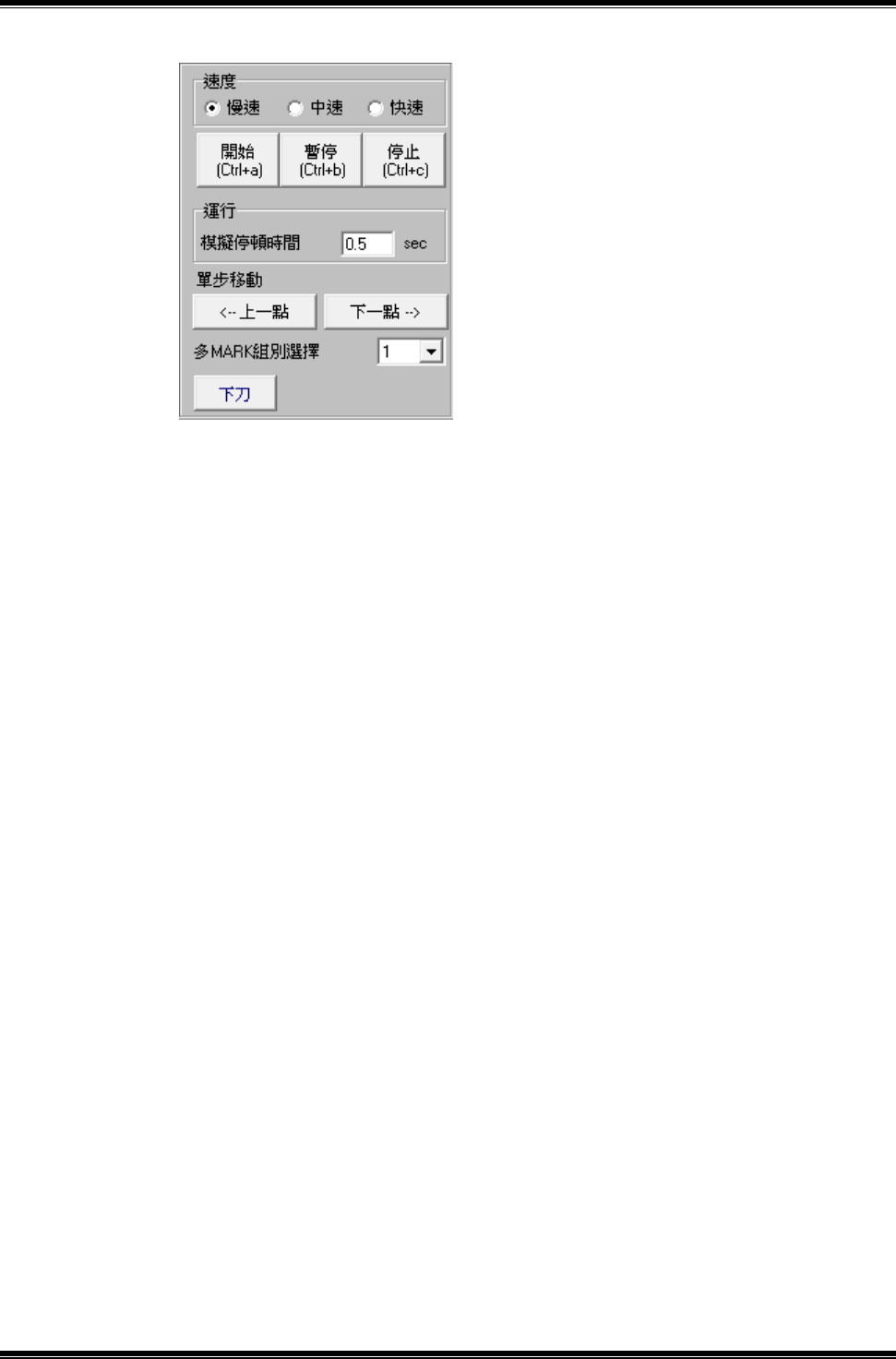 速度:控制模擬行進速度。慢速為切割速度之 1/10,中速為 1/2,全速