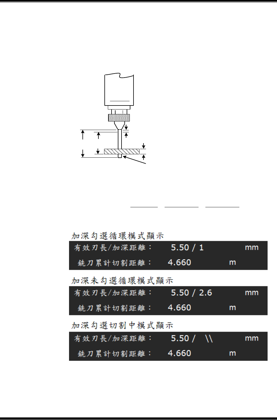 依切割長度銑刀 Z 軸最大下降到銑刀刃長安全高