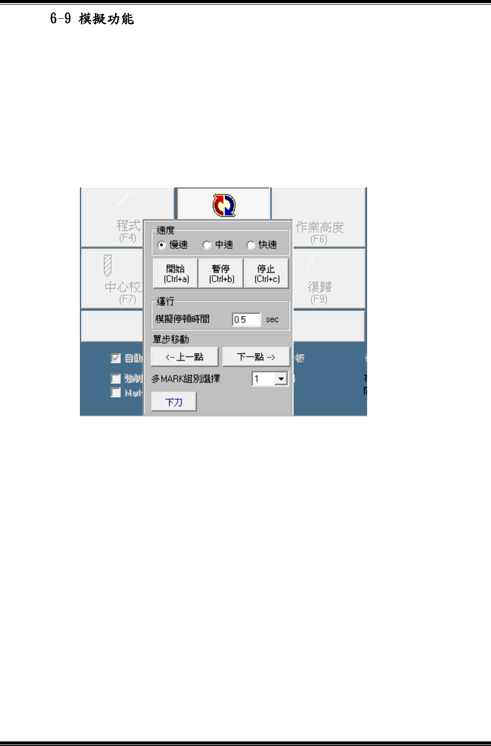 (4)模擬速度為慢、中速時,系統將使用停頓運行,透過影像區可觀察上下刀