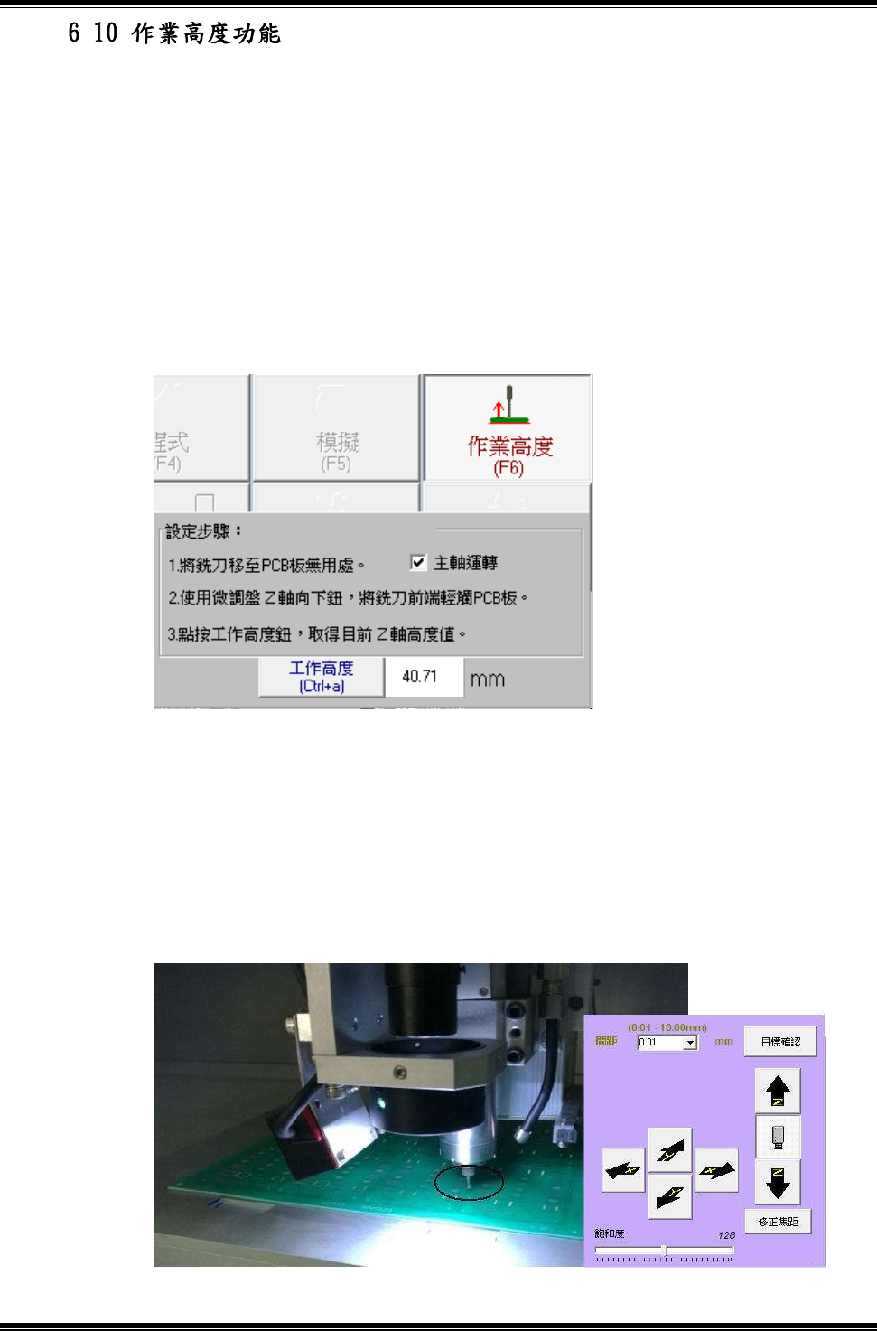 (2)原則上更換銑刀後,系統將自動要求執行作業高度設定。若更換之銑刀為