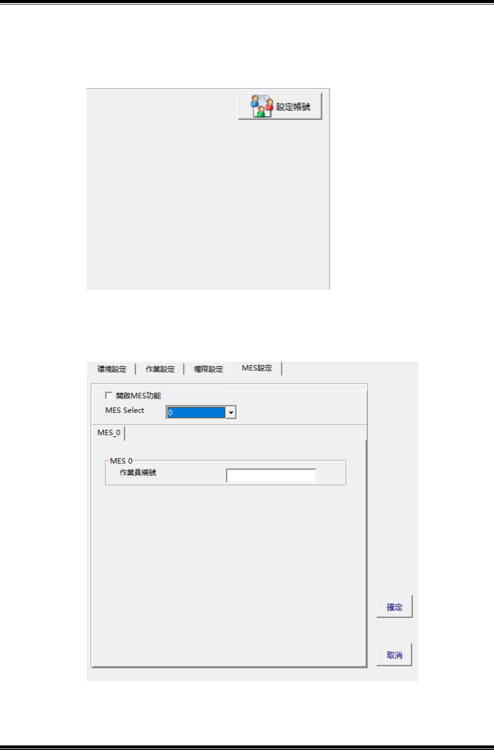 GAM320A 操作說明書 86 (4) 點選權限設定頁面 ,需管理者密碼才能進入 ; 設定人員密碼及開放功能選 項,如圖 6-12-4 。 (5)MES 設定頁面,如圖 6-12-5 。 圖 6-12-4 圖 6-12-5