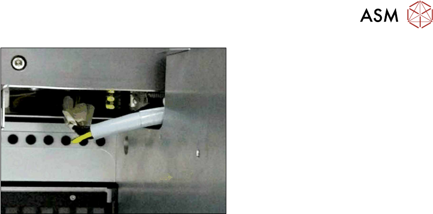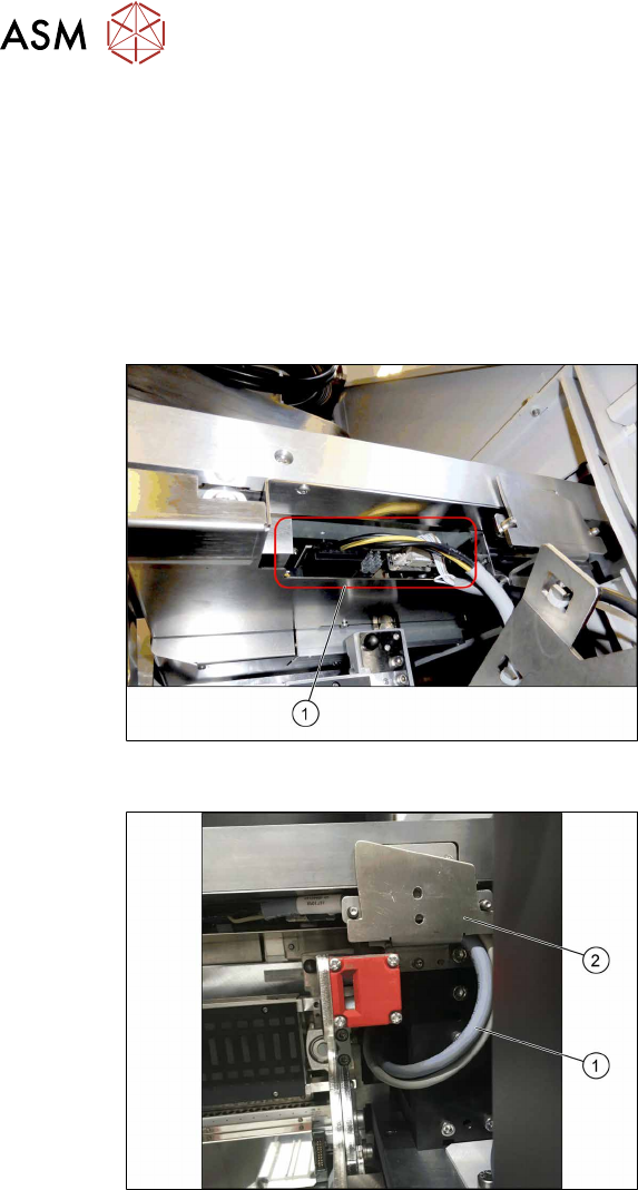 4 设置与调试 4.2 改造 SIPLACE TX 系列贴片机 用户手册 SIPLACE TX V1/V2 Series JEDEC Tray Feeder (JTF-ML2) 11/2019 53 图90: 电缆和已停靠的 COT ► 确保电缆和 COT 之间留有间隙,以避 免插入或拆卸 COT 时摩擦电缆。 ► 将电缆沿着 SIPLACE JTF‑ML2 的传送导轨下方送至 COT 插件的背部。 ► 将 CAN 总线电缆 [031…